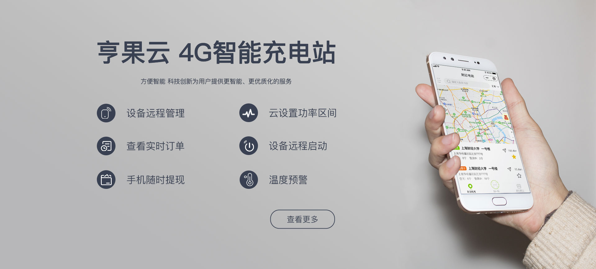 實時監測 | 遠程啟動 | 收益統計 | 設備管理 | 場地管理 | 功能設置 | 記錄到賬 | T+1到賬